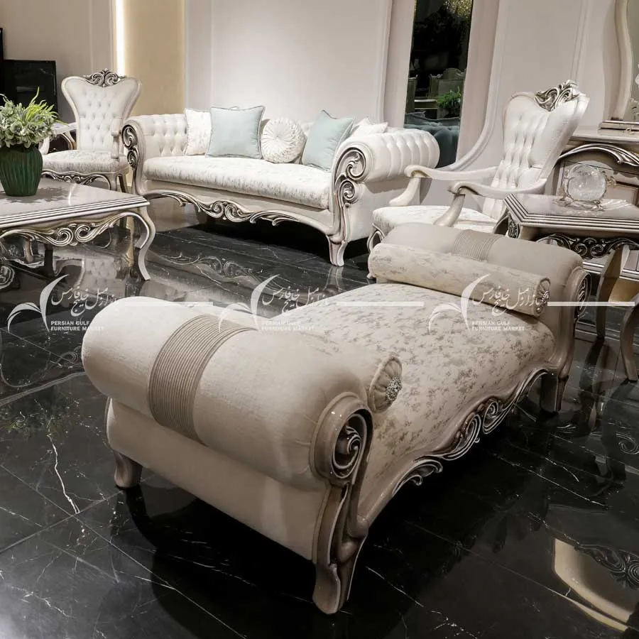 سرویس مبلمان فلورانس در قالب 7 نفره طراحی شده و متناسب با سالنهای پذیرایی متوسط تا بزرگ است. طراحی متقارن و ظریف آن با انحناهای نرم، پایههای حکاکیشده و ترکیب رنگ پوششی، محیطی گرم و دلنشین خلق میکند که برای مهمانیهای رسمی و خانوادگی کاملاً مناسب است.